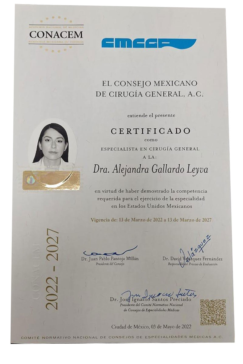 Certification in General Surgery. Mexican Council of General Surgery. 2022-2027.